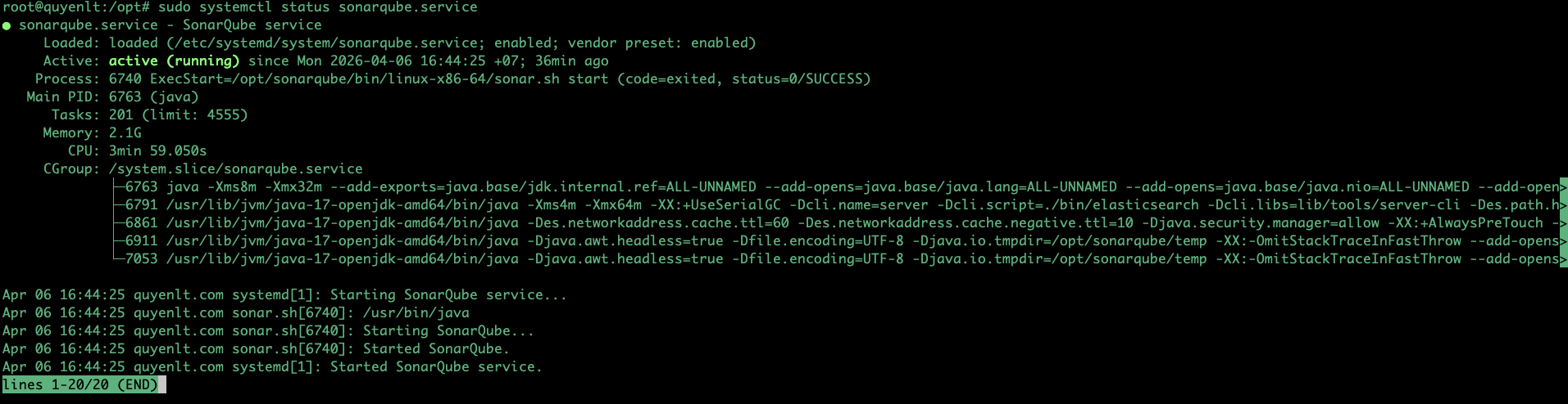 Để SonarQube tự động chạy mỗi khi máy chủ khởi động lại (reboot), chúng ta cần tạo một Systemd service.