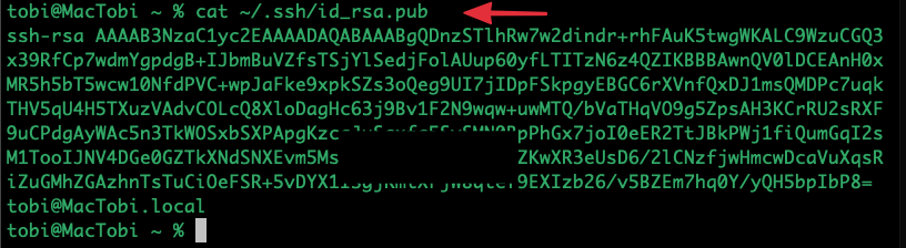 Sau đó bạn dùng lệnh cat để xem pub key, public key này sẽ mang lên server dán vào để ssh.