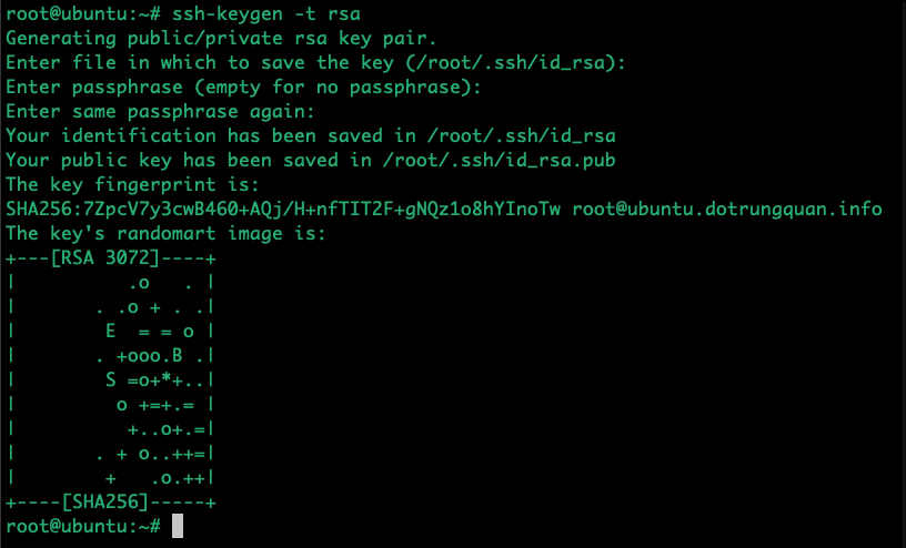 - Các key sẽ được tạo ra và lưu trữ trong /root/.ssh/gồm có id_rsa và pub