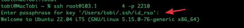 Tiến hành SSH thử từ máy cá nhân , bạn sẽ nhập password của key lúc tạo nhé:
