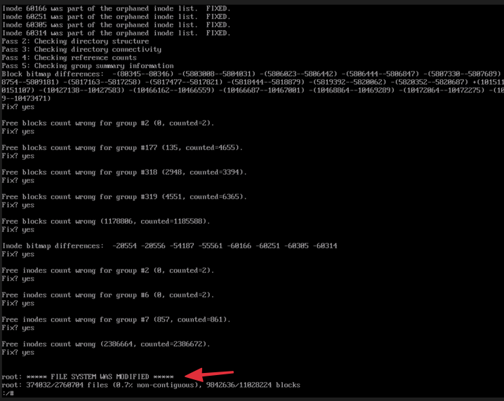 Bước 2: Chạy lệnh fsck để sửa lỗi Filesystem