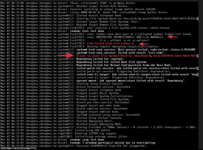 fsck failed with exit status 4. -