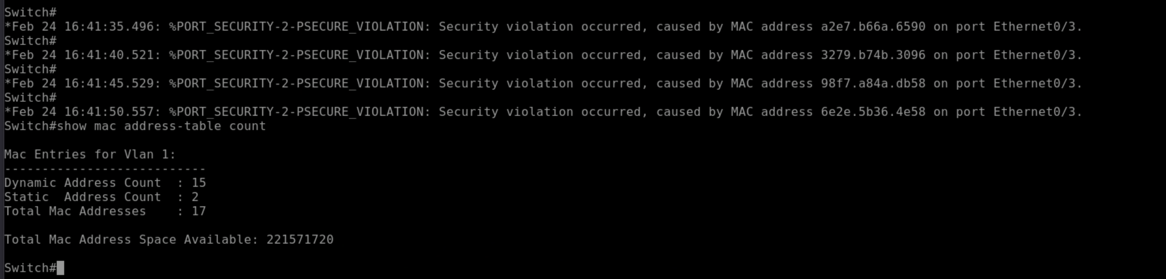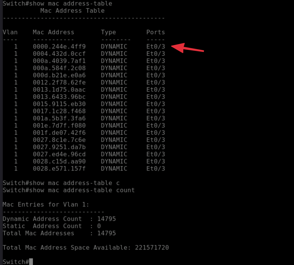 Switch đã chính thức bị hạ gục! Bảng MAC đã tràn, tấn công thành công.