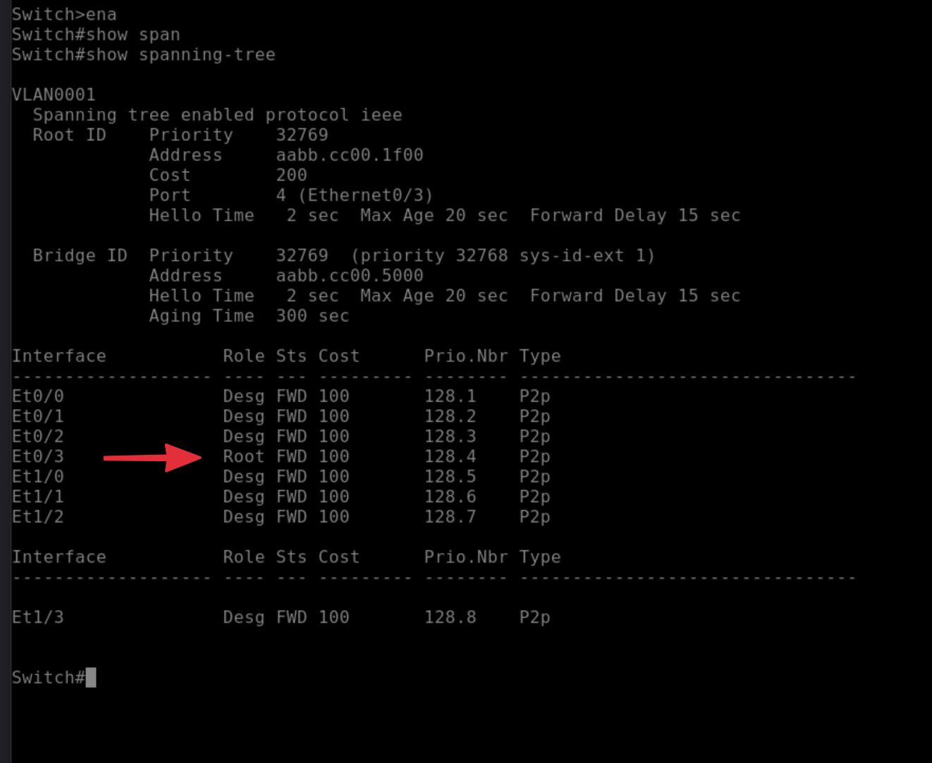 Et0/3vừa có thằng láo toét dùng MAC lạ mạo danh IP 10.1, và bảo vệ đã tát nó văng ra ngoài!)