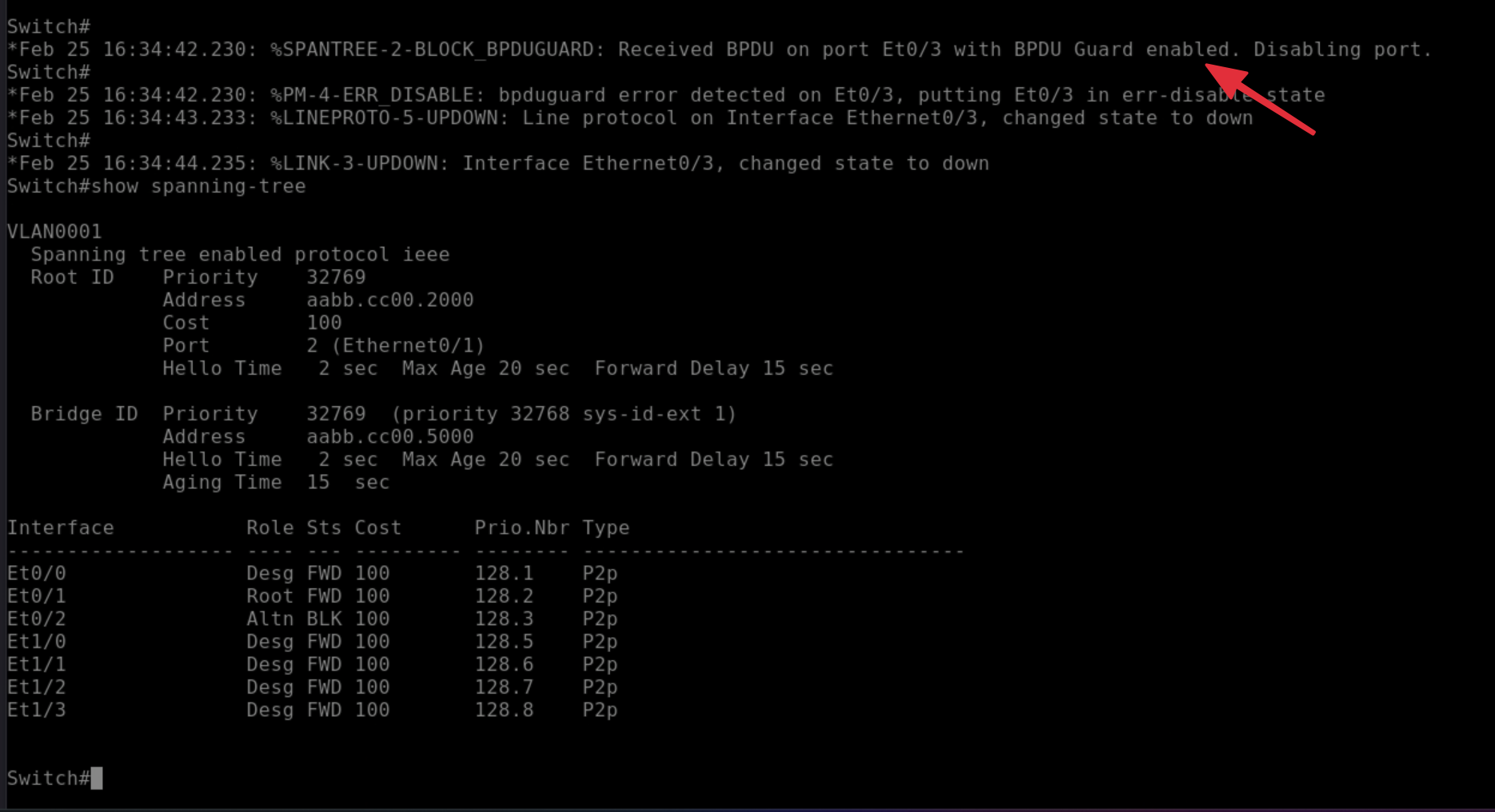 Trên màn hình Console của con SW2: Bạn sẽ thấy nó liên tục nhảy các dòng log cảnh báo đỏ rực: