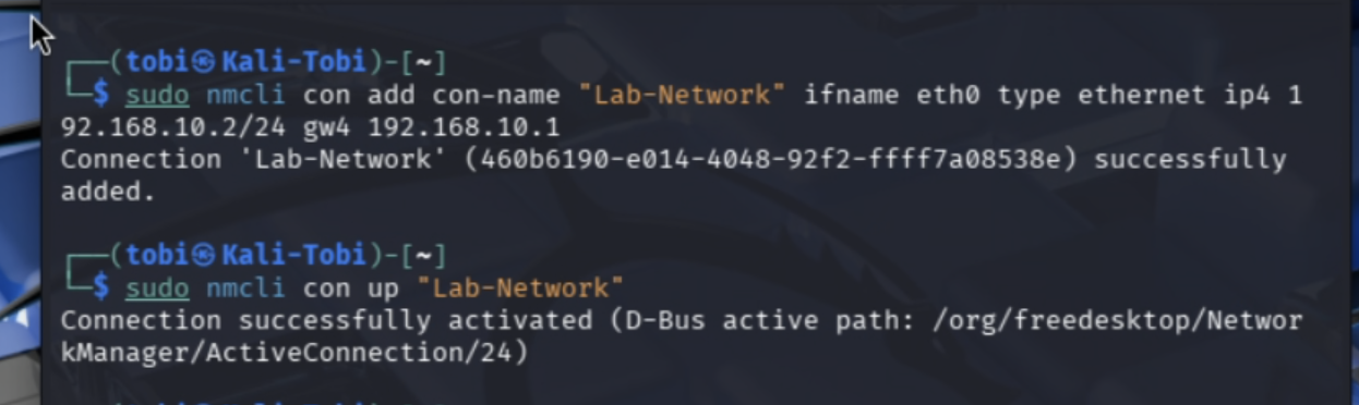 sudo nmcli con up "Lab-Network"
