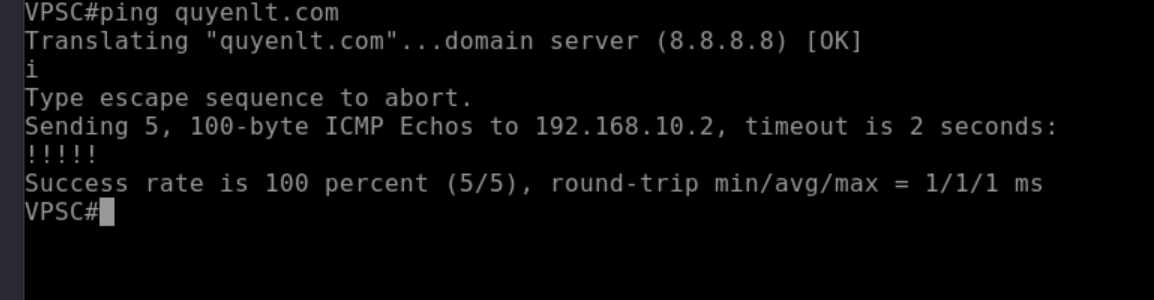 Trên màn hình VPC: Bạn sẽ thấy lệnh ping phân giải ra kết quả là