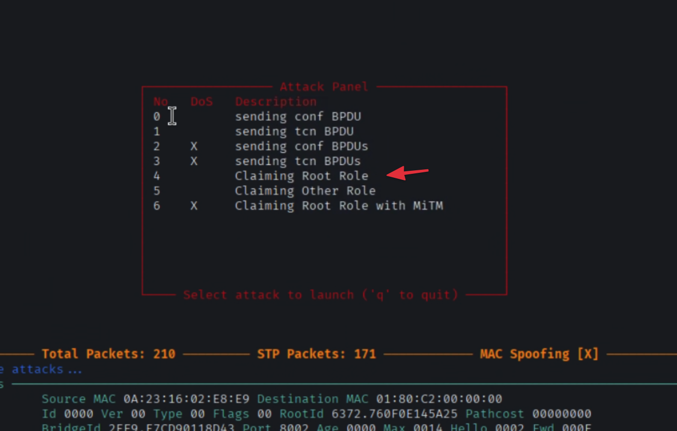 Thực hiện giả mạo Root Bridge.