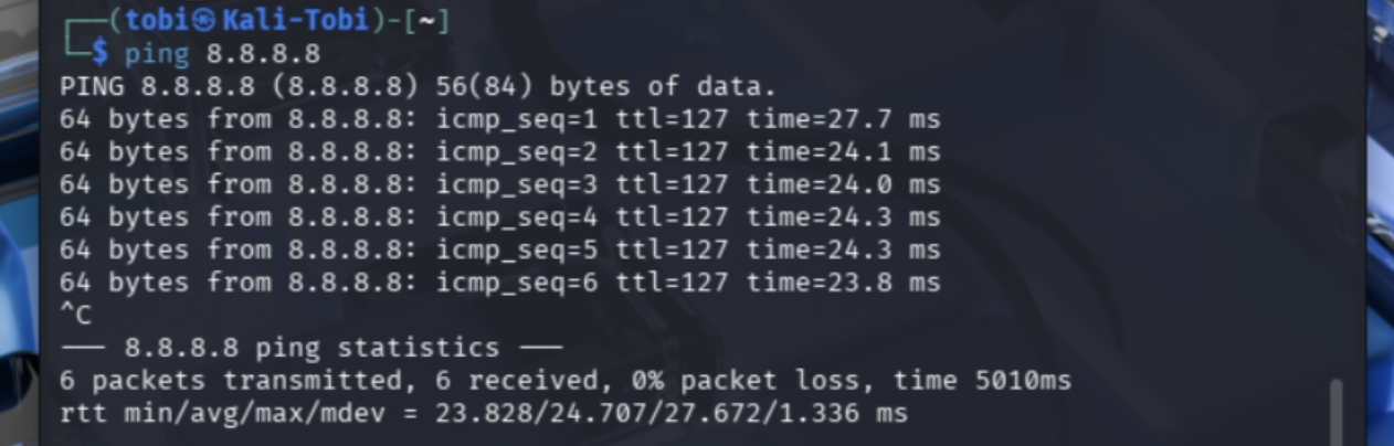8.8.8.8ầm ầm, không hề bị rớt hay đứt đoạn. Đòn DoS của Kali hoàn toàn vô dụng. -