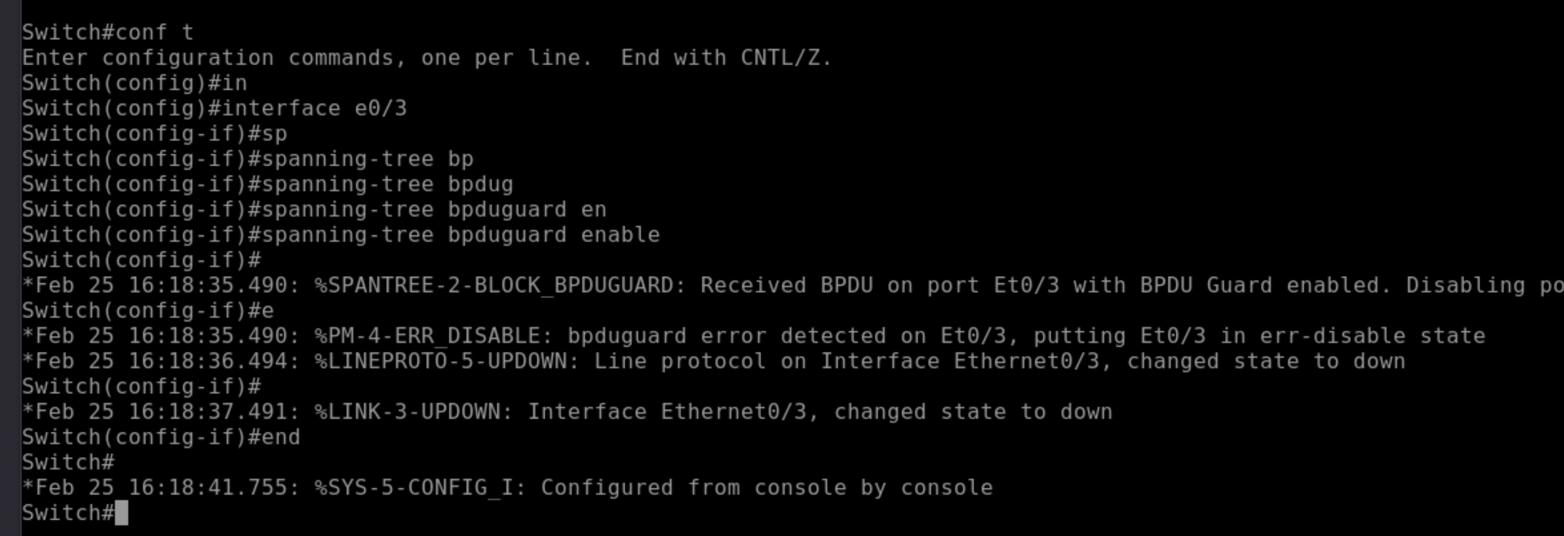 (Lúc này, cổng cắm máy Kali - ví dụ Et0/3 - mặc định sẽ ở trạng thái Untrusted và bị giám sát chặt chẽ).