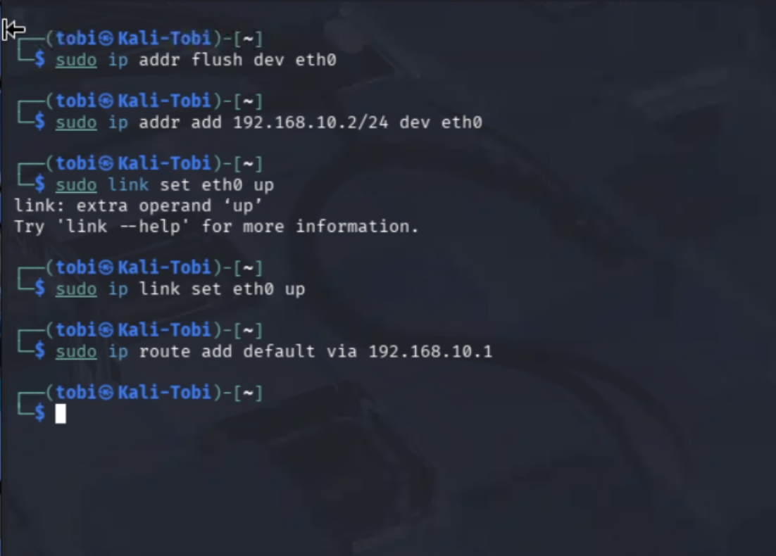 sudo ip addr add 192.168.10.2/24 dev eth0