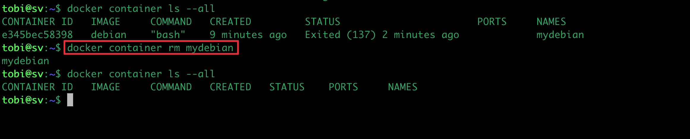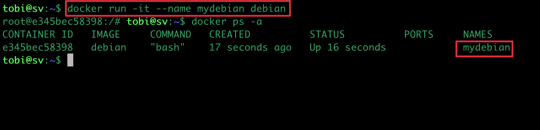 Tạo / chạy một container đặt tên là mydebian của debian :