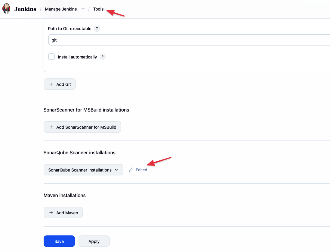 Cuộn xuống mục SonarQube Scanner installations, bấm Add SonarQube Scanner.