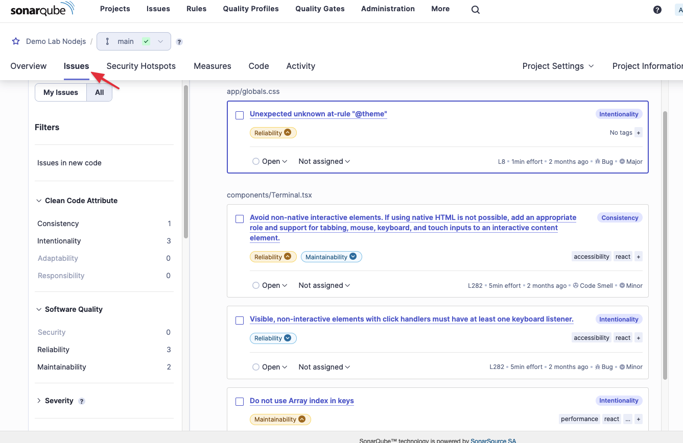 Nhớ cái điểm "E" màu đỏ chót ở tab Overview lúc nãy không? Đó chính là chức năng SAST (Static Application Security Testing) của SonarQube.