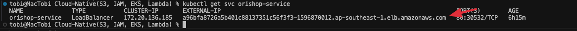 Bạn hãy nhìn vào cột EXTERNAL-IP. Nó sẽ là một cái link dài dằng dặc của AWS (dạng ...ap-southeast-1.elb.amazonaws.com).