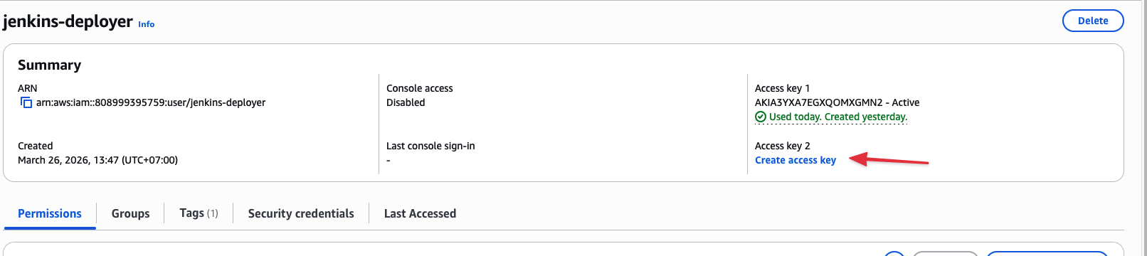 Bước 1: Cấp "Hộ chiếu AWS" cho Jenkins Như đã bàn, vì VPS này nằm ngoài AWS, bạn cần: