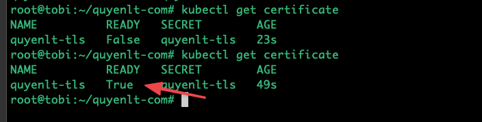 Ngay sau khi bạn chạy lệnh trên, cert-manager sẽ bí mật chạy ra ngoài internet xin chứng chỉ từ Let's Encrypt. Quá trình này mất khoảng 30 giây - 1 phút.