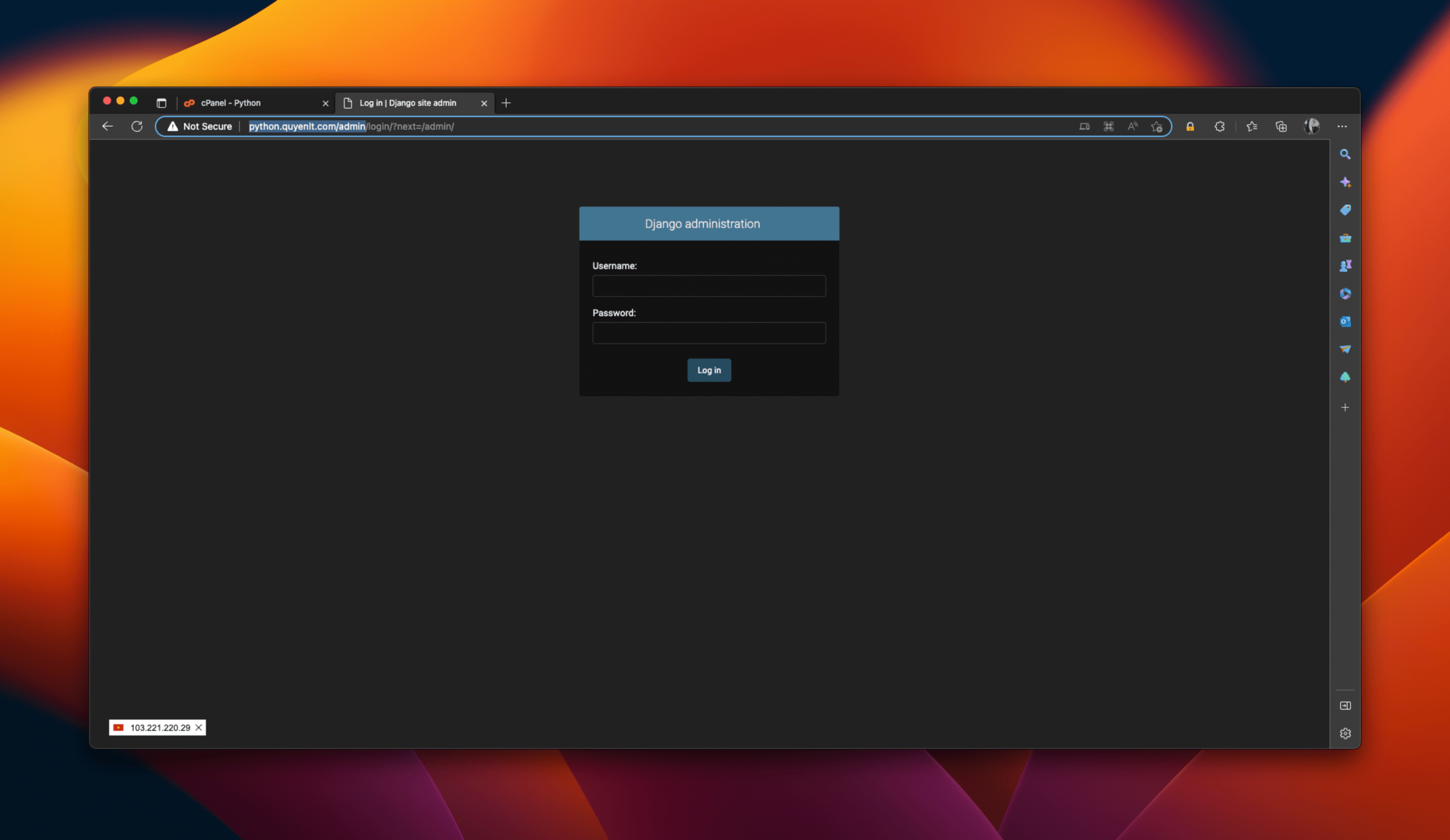 **Link truy cập admin sẽ là : http://python.quyenlt.com/admin