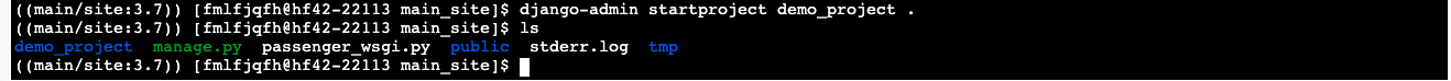 echo > passenger_wsgi.py && echo "from demo_project.wsgi import application" > passenger_wsgi.py