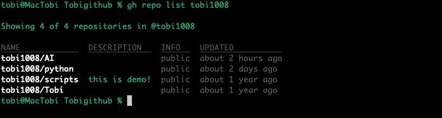 gh repo list <username>