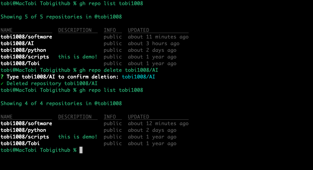 Xoá Repository bằng GitHub CLI: