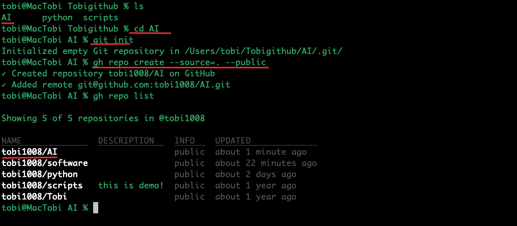Ví dụ có thư mục tên AI có sẵn ở máy tính, và mình muốn tạo repository với thư mục có sẵn này :
