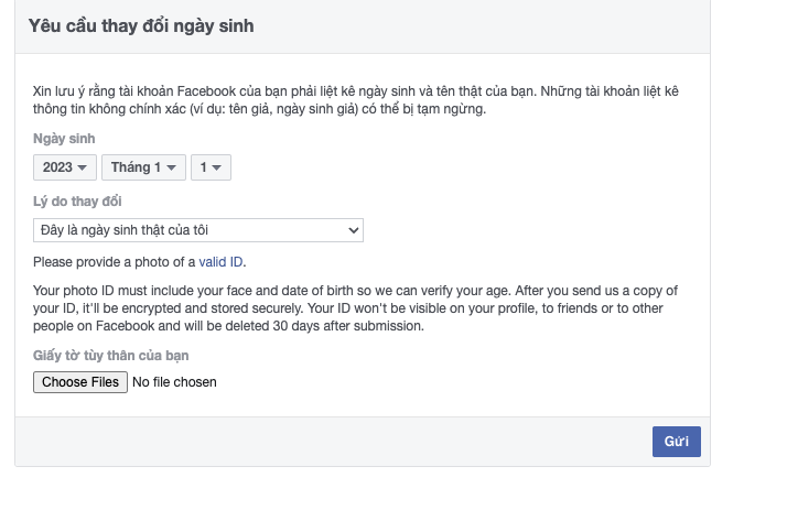 Mạng xã hội Facebook quy định trên tài khoản Facebook cá nhân, việc chỉnh sửa ngày sinh không được quá giới hạn (có ghi trong Trung tâm trợ giúp). Nhưng thực ra, Facebook vẫn cho phép chúng ta được yêu cầu thay đổi lại ngày sinh (đổi ngày sinh nhiều lần khi bị giới hạn).