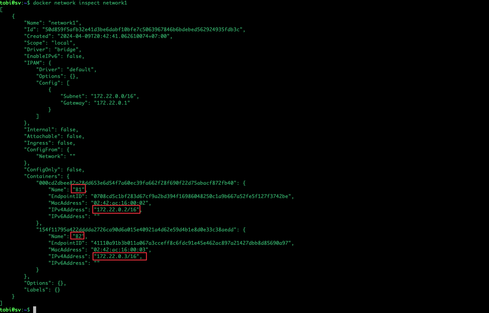 docker network inspect network1