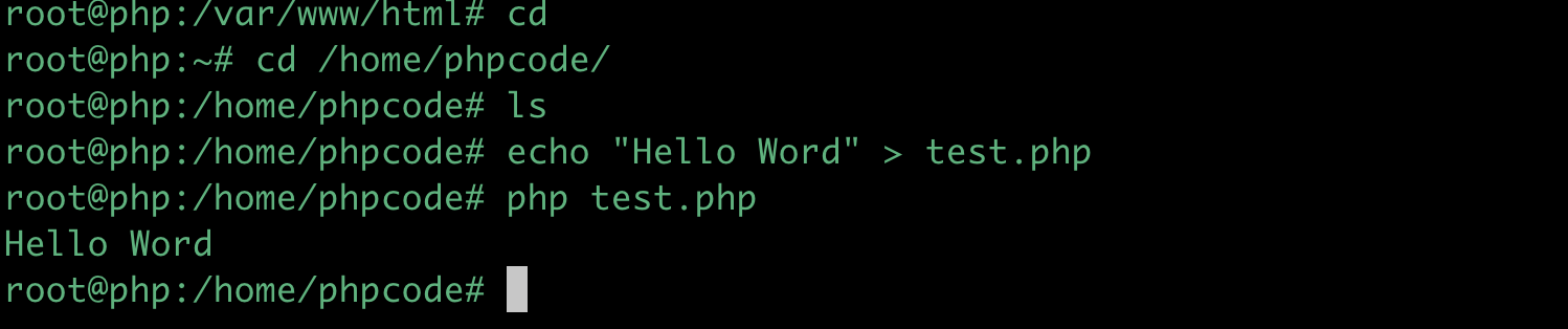 Kết quả hiện thị thông tin phiên bản PHP, vậy bạn đã có một container PHP rồi!. Thử tạo một script PHP có tên test.php và chạy nó từ dòng lệnh của container này.