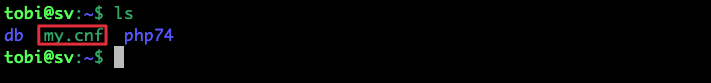 Lúc này ở máy host tại đường dẫn /home/tobi/ sẽ có file my.cnf được copy từ container mysql ra